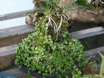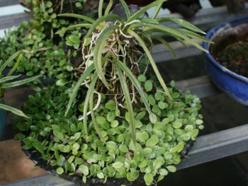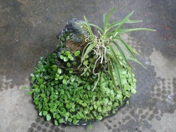제주현무암에 소옆풍란과 콩짜게 덩쿨을 착생시켜 석부작 현출하였습니다. 실내 공기정화용으로 감상하실 수 있습니다.