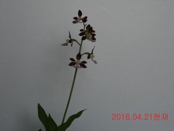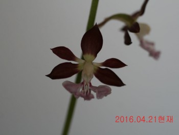 자생지에서 흔치 않는 짙은 적색의 화판에 색설의 새우란입니다.