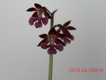 붉은 적판계열에 짙은 색설 새우란으로 세력 좋아지면 명품으로 성장 할 수 있는 난입니다.
