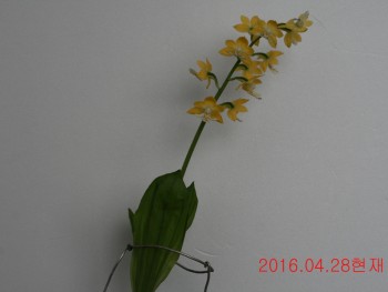 황금색을 띠고 있는 황판백설 일본새우란입니다.