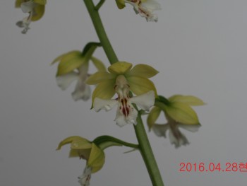 옅은 녹색을 띠고 있는 일본새우란 입니다.