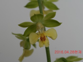 취록색의 화색을 갖춘 새우란으로 녹판황설이며 꽃은 소형종입니다.