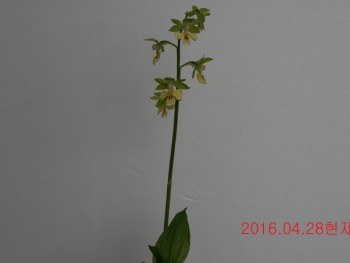 취록색의 화색을 갖춘 일본새우란으로 녹판황설이며 꽃은 소형종입니다.