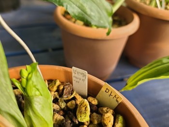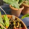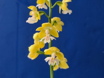 화형단정한 황금색의 금새우란 백설입니다.