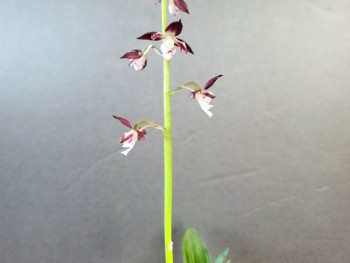 한국새우란 홍화로 투구화 형태를 갖추고 부판에 호화를 띠는 명화입니다.
