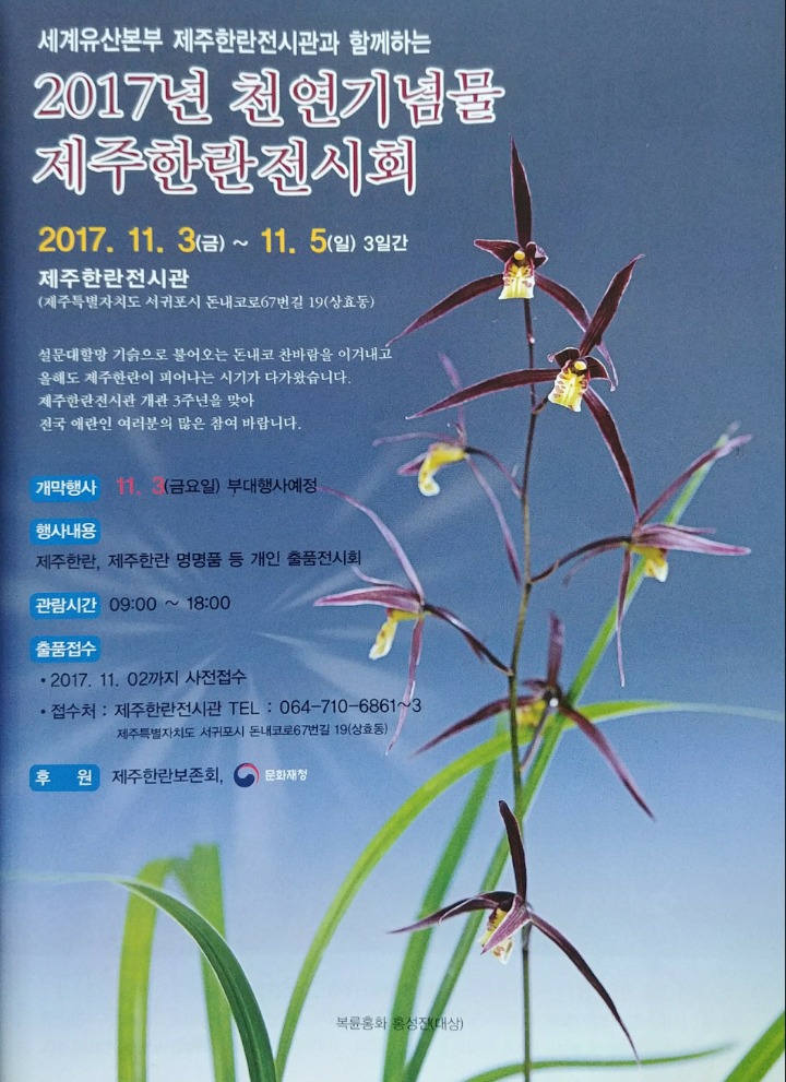 2017년 한란전시회 페이지 정보 작성자 난세영웅 작성일17-10-15 20:06 조회11,550회 댓글0건 관련링크 이전글 다음글 목록 본문 서귀포시 한란전시관 댓글목록 등록된 댓글이 없습니다. 이전글 다음글 목록